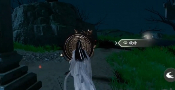7、再返回圆盘那里继续转视角让石碑能够拼出字。