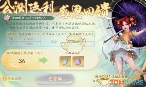 1、测试期间充值过的仙友,首发开启后登录游戏,角色等级达到9级开放。