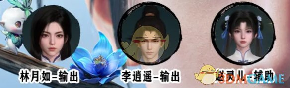 2、李逍遥+林月如+赵灵儿:李逍遥和林月如为输出型角色,赵灵儿承担辅助。