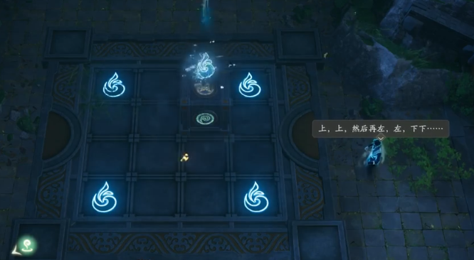 想要还原丢失的壁画,必须要先去完成前置解谜任务,等玩家进入到苏州之后会接取任务,需要进入到一个院落里,破解院落主人留下的谜题,首先在庭院里会有一块空地,上面会有很多带有不同图案的石砖,玩家需要做的就是把这些石砖都摆放到指定的位置,要确保上面的图案都是完全统一一致的,只有不断移动砖石上巨大的骰子,每次移动,都会在不同的砖块上出现图案,可以尝试让骰子先向上两格,然后再向左两格,接着再向下两格,这时候就可以看到所有的砖石上都出现了水的图案。