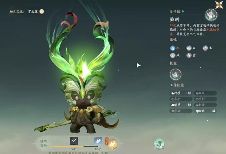 再看战斗型苦草精的门道,当玩家等级达到15级左右,就具备抓捕苦草精的资格,抓捕过程类似擒获其他BOSS,关键在于控制苦草精血量,将其打压到1000左右,此时用蓝葫芦抓捕,成功率颇高,可别误用绿瓶,那失败概率可就大了,成功收服后苦草精便成为战斗中的得力助手,它的技能堪称一绝,能为全队源源不断地回血,在高难度副本或面对强力首领时,这回血技能就是队伍的“生命线”,像单刷21级苦草首精领,首领回血快、小怪频出,有苦草精在旁回血,玩家便能安心输出,降低单刷难度,组队挑战时,比如玄一幻境30层,合理阵容搭配苦草精更是如虎添翼。