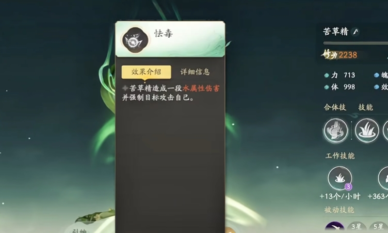 还有家园型苦草精的奇妙作用,在玩家专属的万灵福地,苦草精化身勤劳的种植小帮手,安排它负责种植相关工作,药园作物产量与品质都能显著提升,高品质草药随之增多,这些草药用途广泛,既能制作珍稀丹药助力战斗,又可用于完成关键任务推动游戏进程,要是哪天发现药园毫无产出,要么是御灵体力耗尽在休息,多安排几个有种植能力的宠物轮换上岗即可,要么是压根忘了安排工作,赶紧把苦草精安置到位,种植大业就能顺利重启。