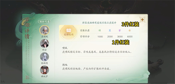 获取数量与挑战BOSS积分相关,3000分以下和6000分以下的紫色宝箱各只能获得一件,而6000分以上的金色宝箱则可获得三件,并有机会获得金色宠物和装备精炼石。提升护符等级,确保生存。