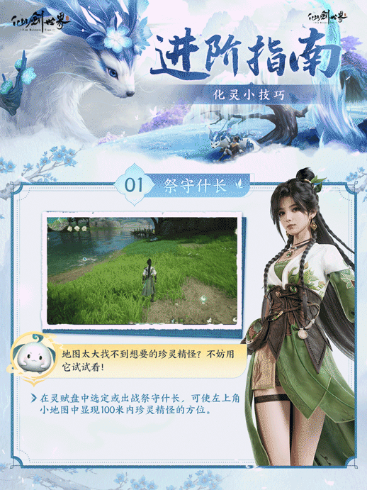 小仙锦囊:在灵赋盘中选装配出战祭守什长,可使左上角小地图中显现珍灵精怪的方位。在大世界探索时,别忘了在灵赋盘中配备祭守什长,才不会错过任何一只珍灵宝宝!