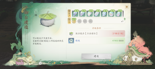 解锁条件:角色等级≥20级时,消耗先天灵元在灵根玄脉激活后,可在夕物台位置建造。