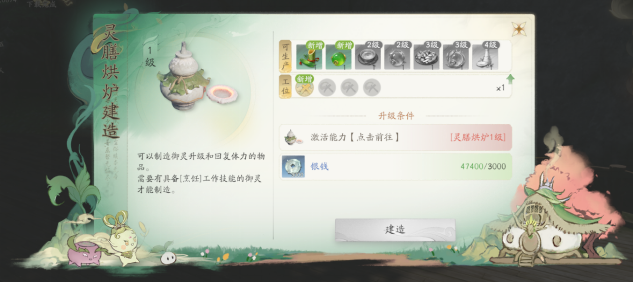 解锁条件:角色等级≥9级时,消耗先天灵元在灵根玄脉激活后,可在灵膳烘炉位置建造。
