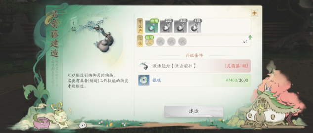 解锁条件:角色等级≥6级时,消耗先天灵元在灵根玄脉激活后,可在灵葫藤位置建造。