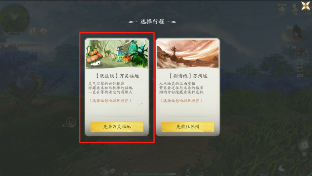 跟随主线,角色到达4级并完成任务走出归云村后,可选择行程(此选项仅影响游玩顺序),想要率先体验万灵福地玩法可选择先去万灵福地。