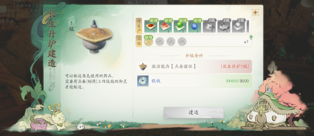 解锁条件:角色等级≥6级时,消耗先天灵元在灵根玄脉激活后,可在长生丹炉位置建造。
