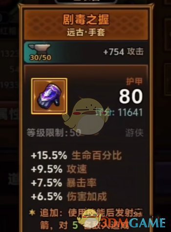 2、同样需要达到50级后可以装备,还具有发射毒箭的附加属性,持续对敌人造成伤害。