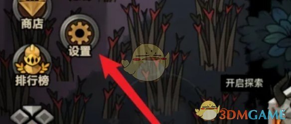 1、进入游戏后,首先点击左侧箭头指向的按钮,然后点击弹框中的【设置】功能。