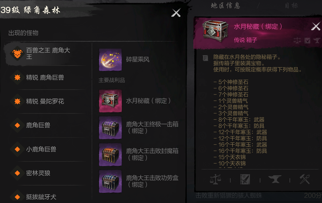 主要战利品:传说箱子!水月秘籍(绑定)超多稀有战力养成资源!神修石可用于点亮更高层级的星图,灵兽精气可用于武功进化!