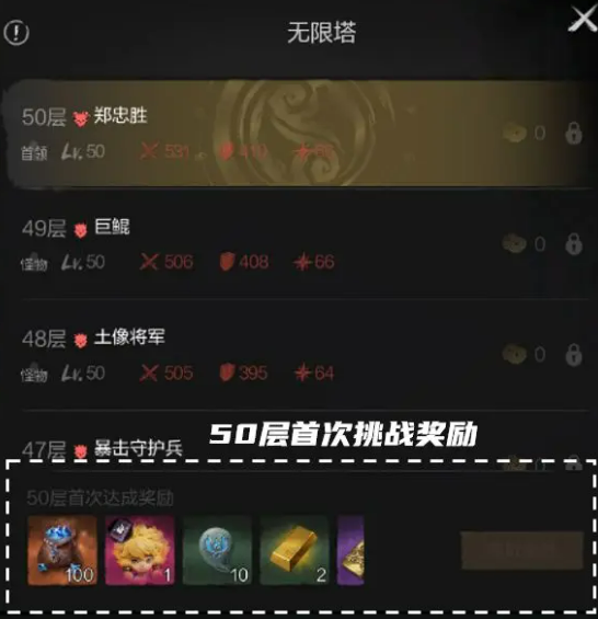 另外,突破层级的策略非常重要。建议玩家们不要急于挑战最高的50层,而是应该根据自身的战力逐层推进,逐渐提升等级和能力值。每一次突破都会带来丰厚的奖励,帮助你逐渐强化角色,使你能够轻松应对未来更高难度的挑战。毕竟,只有在不断突破、不断提升的过程中,你才会获得最终的荣耀。