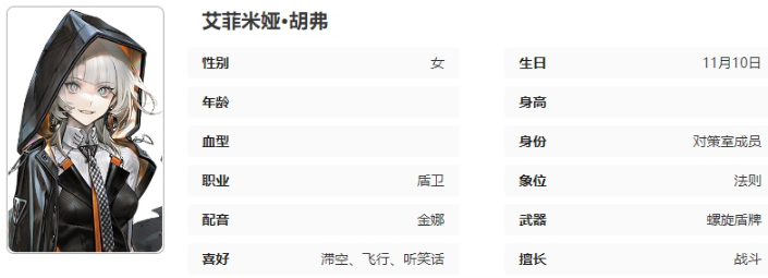 在训练期间的各科目考核成绩均为优秀,实战中也始终保持一贯的亮眼表现,她所使用的螺旋盾牌对任何作战场合都体现出极高的适应性。
