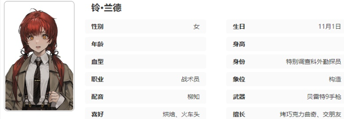 虽然惧怕诡异的事物,但是铃探员在应对异象工作时相当谨慎认真,请放心对她下达指令,她会努力完成的。