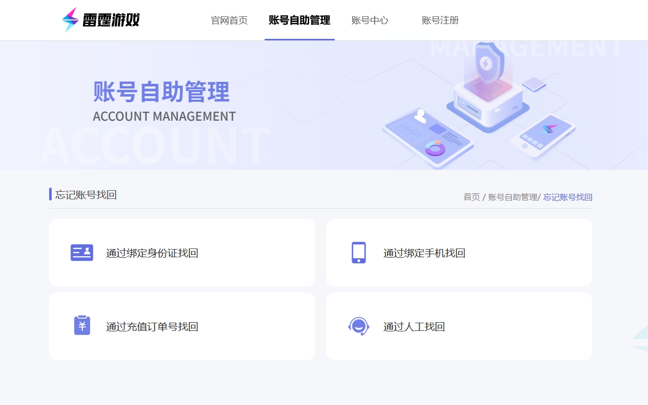 如果之前注册的账号长时间没有登录过游戏,已经忘记了之前的账号,那么又该如何处理?可以通过自助查询页面“忘记账号找回”功能查询之前注册的账号。自助找回页面链接:https://id.leiting.com/accountCenter/accountSelf/accountRetrieval