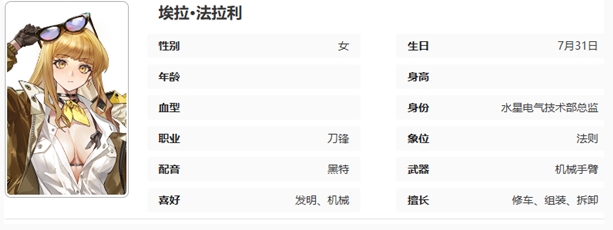 1、远程输出角色,擅长在远距离进行高能量积攒后的多次攻击。