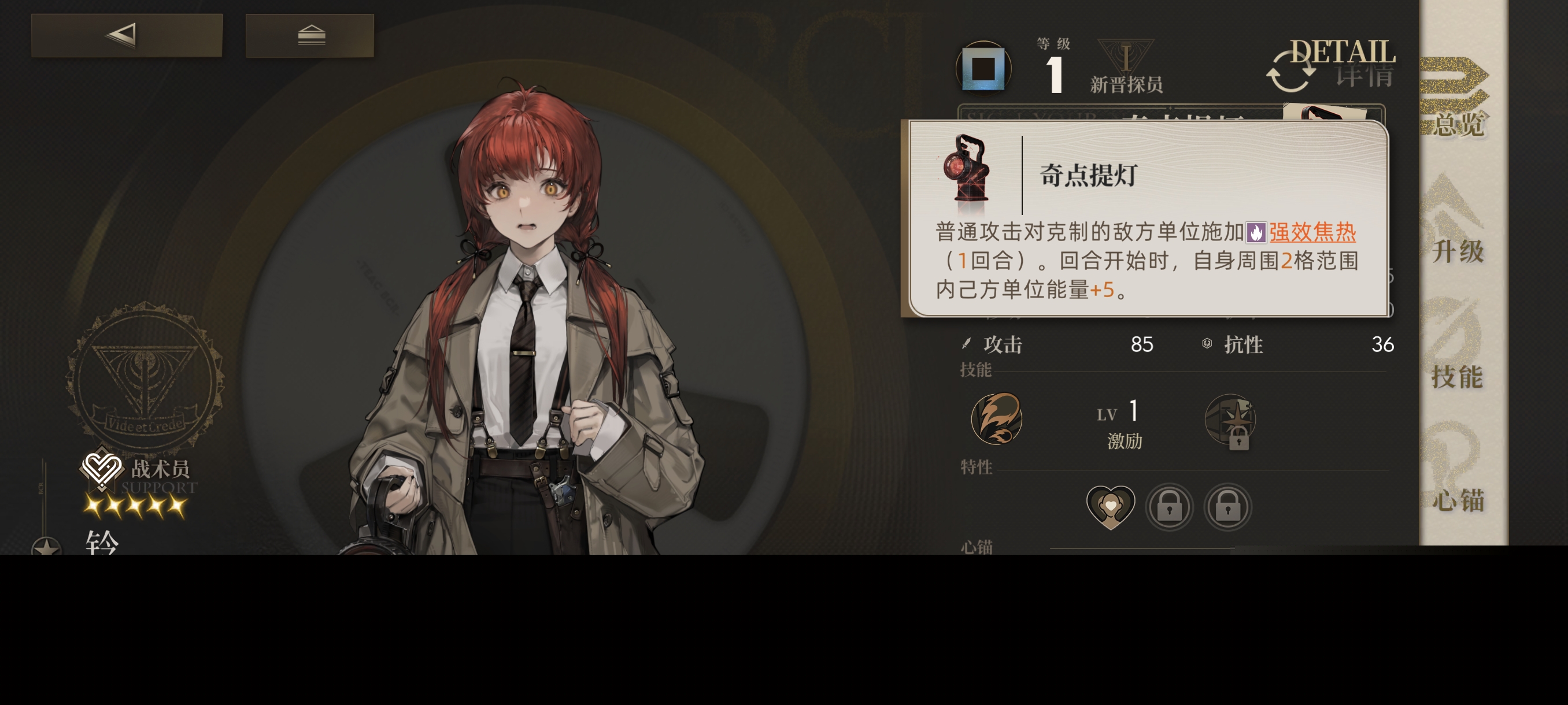 前期开图刀锋不需要高星角色,三星的威廉就已经是高强度刀锋了,其技能全是不结束回合的,而且可单可群,能自我恢复能单体输出,还可以随时撤回资源,性价比极高(四星以下角色都有亮点,性价比和功能性都很突出)