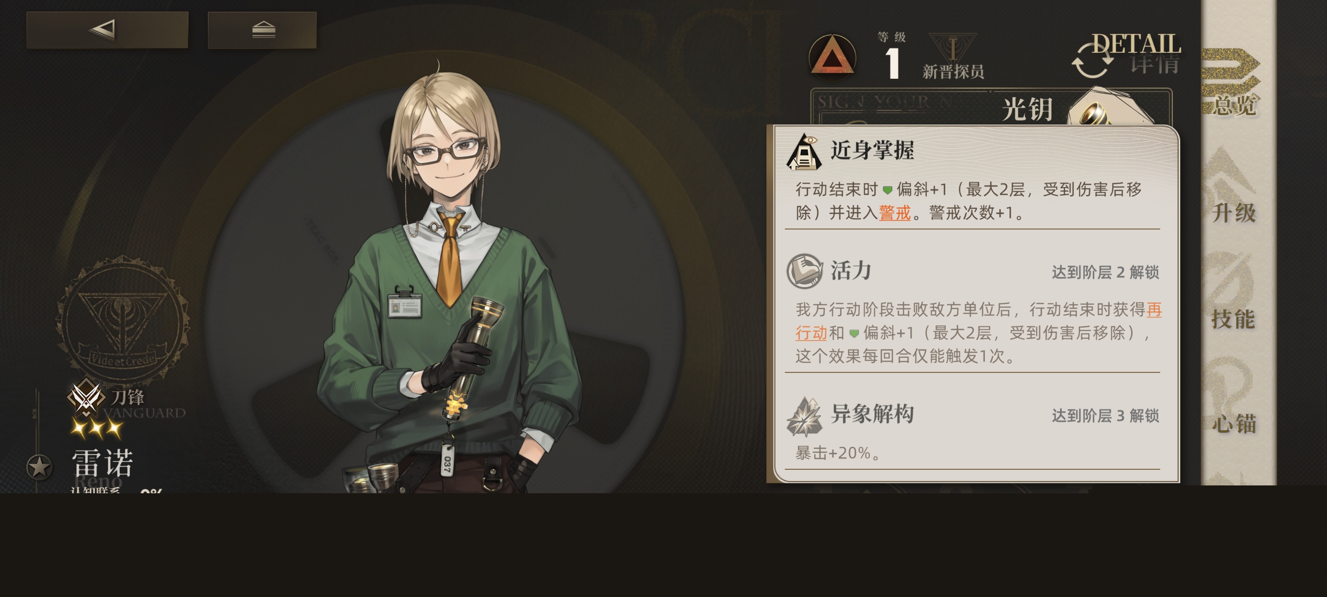 或者另一个三星角色雷诺,极致的对单极致的享受,还拥有警戒,前期暴击率最容易叠出来的三星角色,短轴爆发感觉还不错。