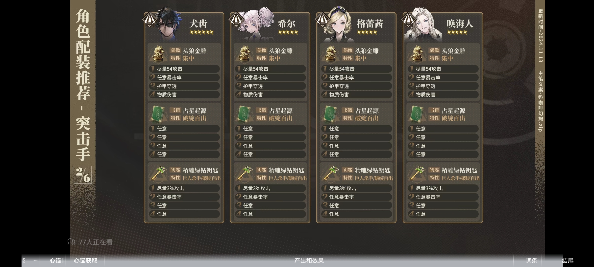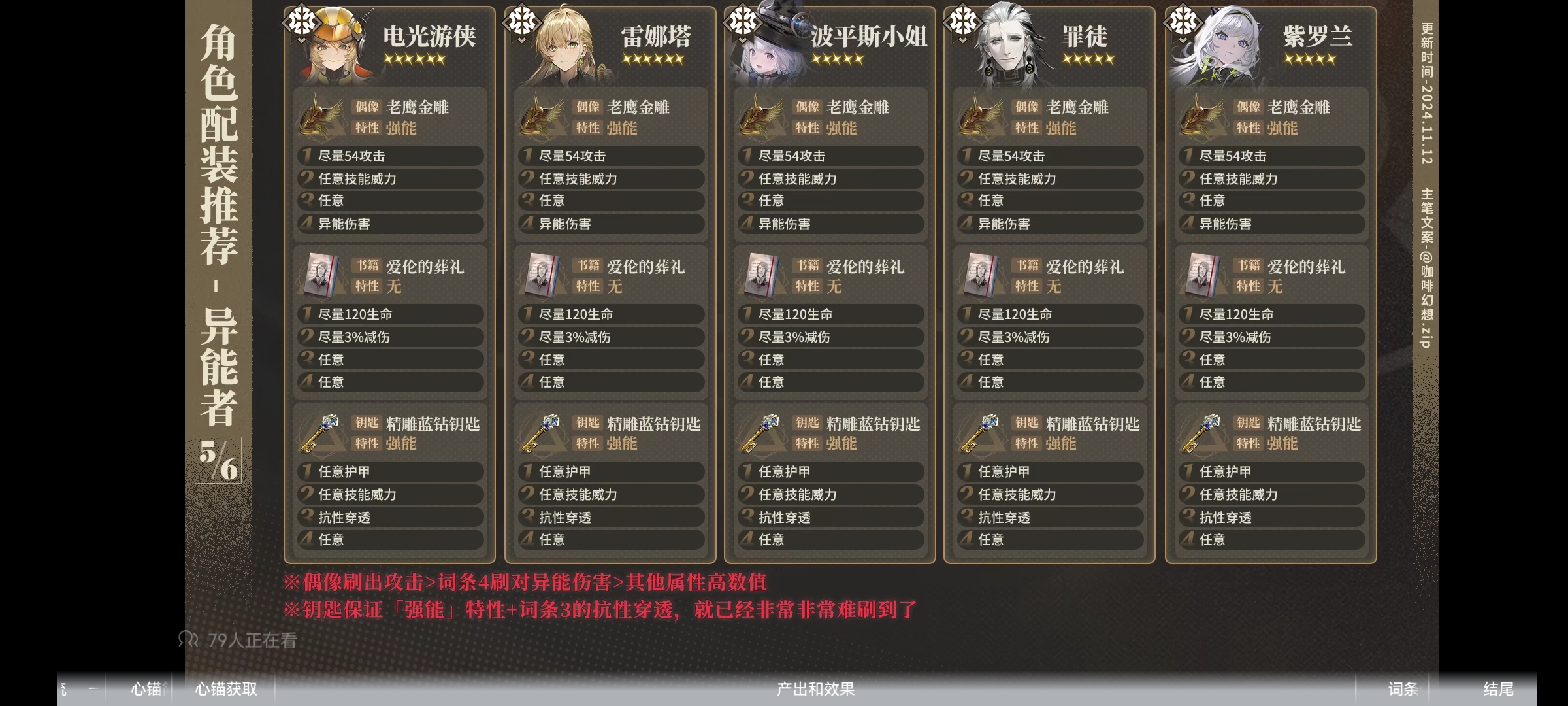 《异象回声》心锚角色配装一图流推荐