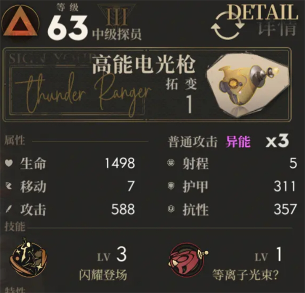 电光游侠,纯凑数,上个什么都行,也可以上奶减少压力,上狙来加输出,队伍的容错位,生命1300左右。