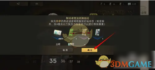 点击“确定”即可重置探员并获得资源返还。