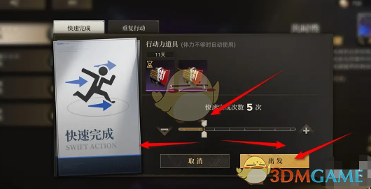 5、左右滑动进度条可设置扫荡的次数,根据个人需求进行设置,完成设置点击出发。