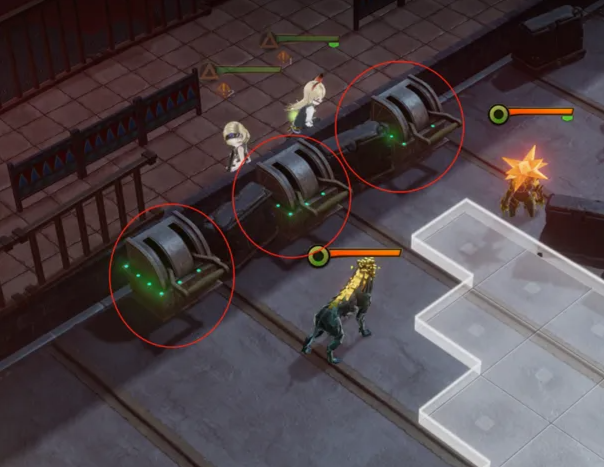 M313关卡只需要在第1回合,分别派3位角色攻击3个开关,将3个车子都开动即可。