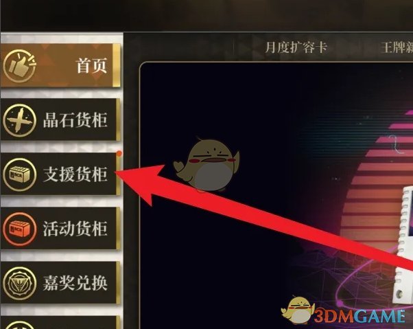 2、在补给站页面,点击左侧的支援货柜选项;