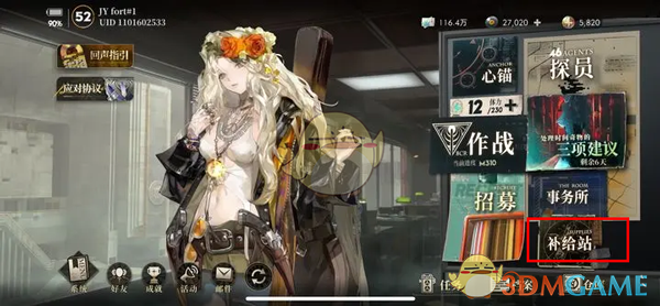 1、首先在游戏主页,点击右下角的补给站前往详情页;