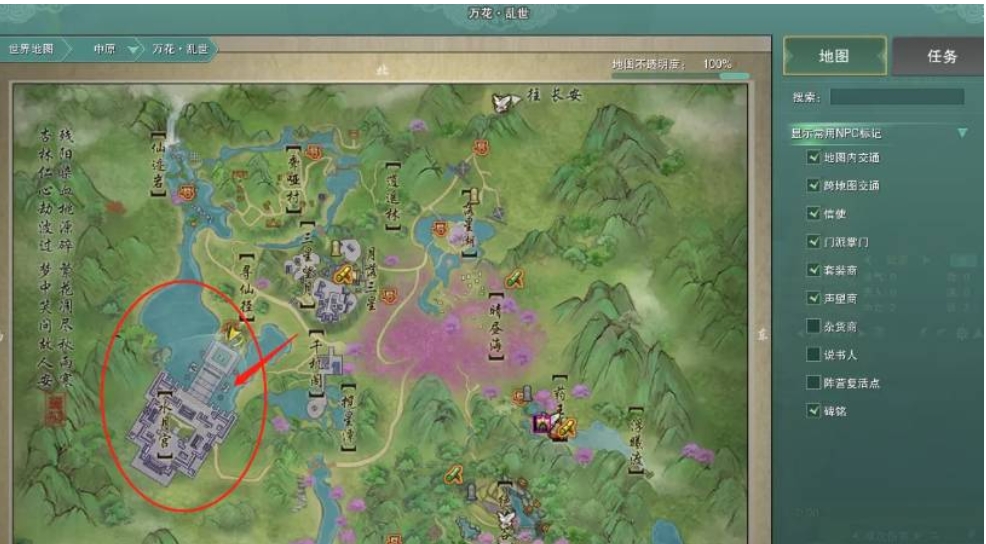 1、进入游戏后打开地图,然后前往万花乱世所在位置