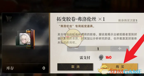 4、最后花费160个虚妄银币即可购买获得弗洛伦丝的拓变胶卷。