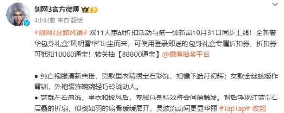 1、奢华包身礼盒【风明雪华】将于10月31日上线;