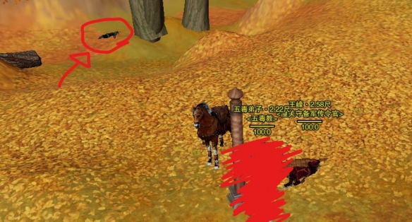 1、奇遇触发后和【马四】对话然后去图示位置互动【沙土堆】获得【腰牌】;