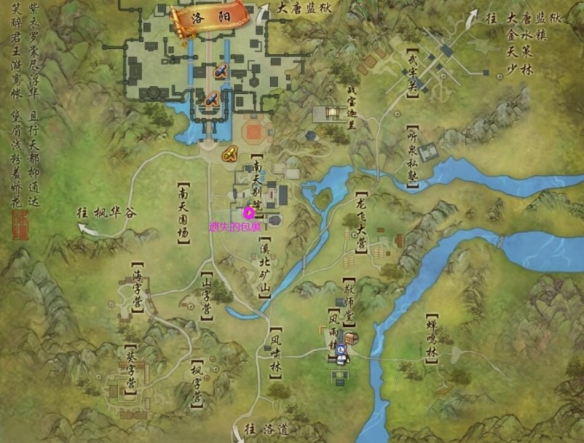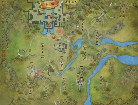 2、去老洛阳海字营岗哨二层找【朱天】,然后在南天别院院字左侧找到【遗失的包裹】;