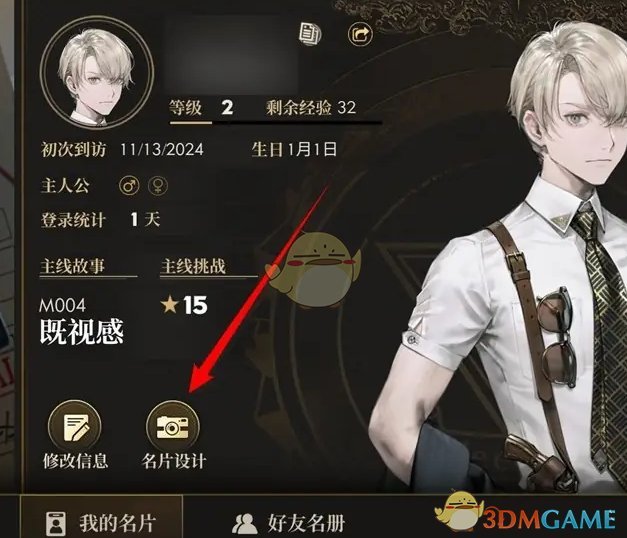 2、来到玩家个人中心后,点击左侧下方的名片设计功能;