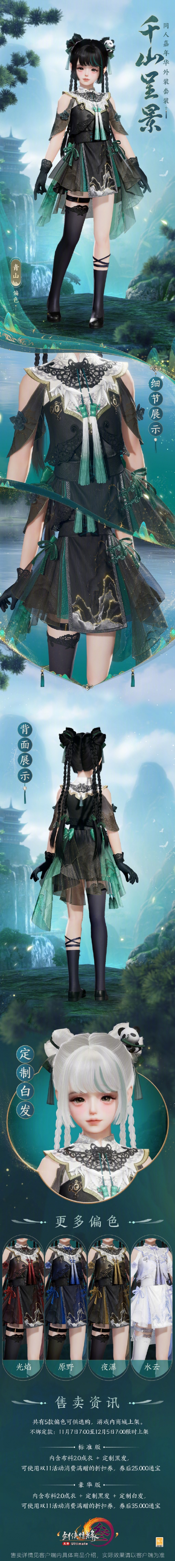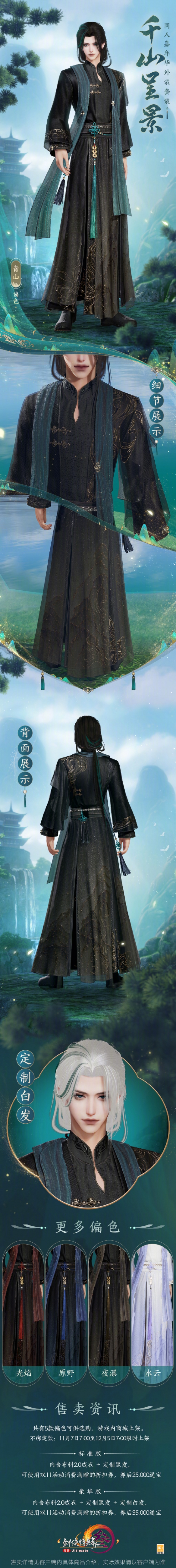 同人嘉年华外装千山呈景即将在11月7日上线,很多玩家都想知道剑网3时装千山呈景长什么样,外观有5种偏色,且分为标准版和豪华版两种,都可使用折扣券,接下来就由小编给大家带来了详细的《剑网3》同人嘉年华外装千山呈景外观一览。