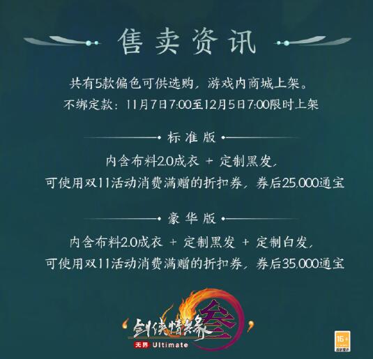 不绑定款(5种偏色):11月7日7:00-12月5日7:00限时上架