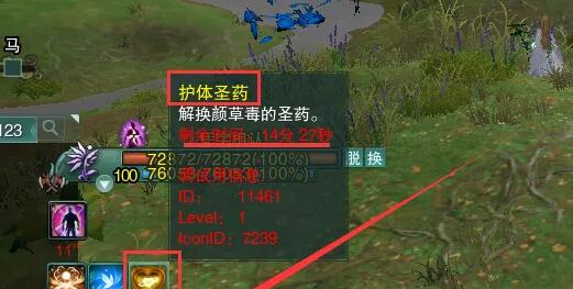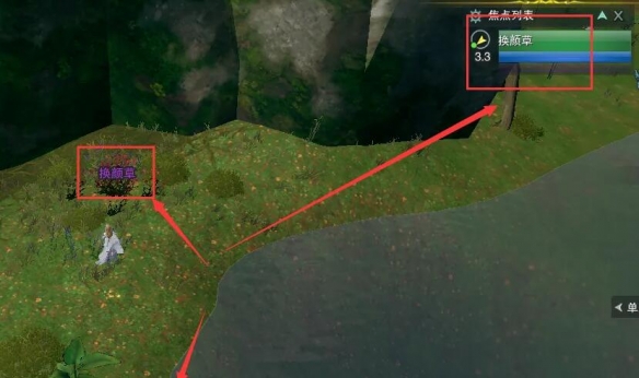 3、继续对话【苗森尔】,然后去幽魂草泽对话【乌苏】,带着buff去找【换颜草】(buff持续15分钟);