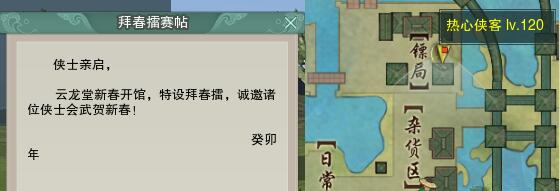通过获得和任务获得【拜春擂赛帖】开启后即可触发奇遇。