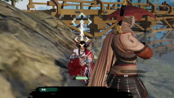 5、接着玩家需要前往寨子上方寻找末哥举行对话。