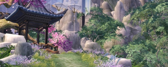 之后玩家往前走到青龙门口左边的树丛,在这里会出现一个卷轴,玩家按F与卷轴互动就可以完成任务了。