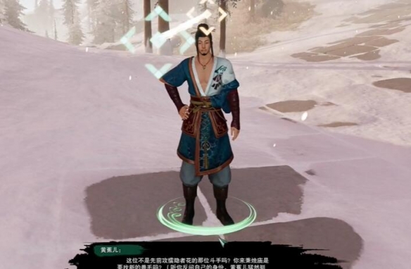 3、再次返回到客栈找到【闻千瞬】对话,再前往房顶与NPC【隐者花】进行战斗。