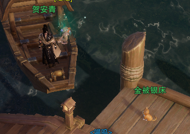 6、遇到一只小橘猫,用炭烤大黄鱼来喂它,炭烤大黄鱼可以在交易行或者帮会领地唱晚池那买,花费60金。