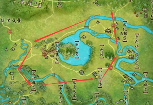 4、想要抓赤兔的玩家按照图示路线循环找即可。