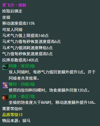 2、黑龙沼只会刷新13阶白马坐骑【里飞沙】;