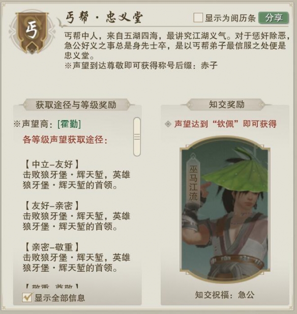 《剑网3》丐帮忠义堂声望提升方法: