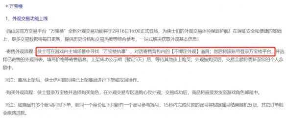 4、在万宝楼平台可以交易不绑定的外观等道具,填写寄售信息即可上架。