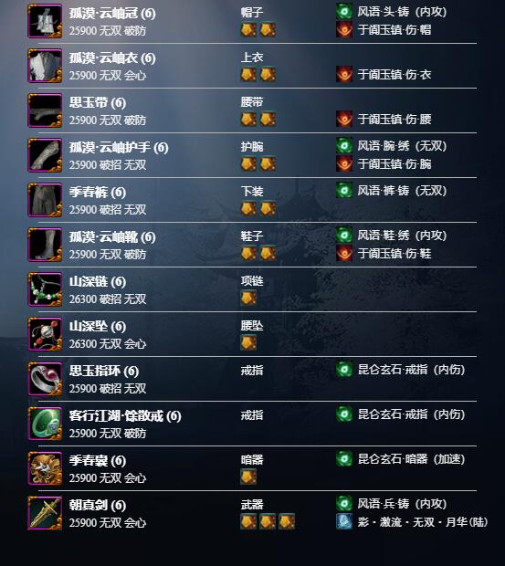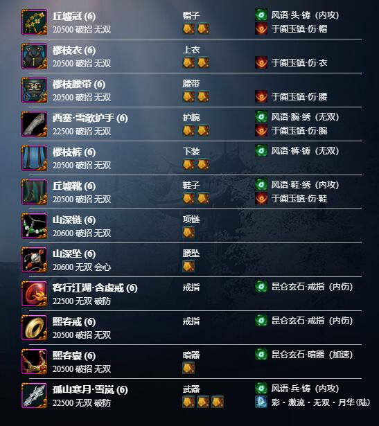 2、以下配装使用紫色附魔和八级五行石可以自行进行替换;