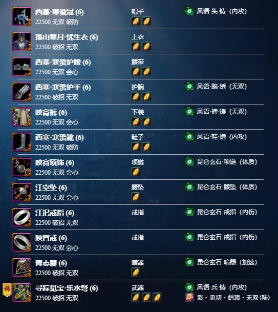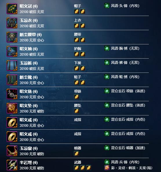 1、目标属性:4W破招 20+会心 10破防(无双越高越好)